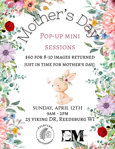 EmMae Wellness Shop is hosting a Pop-Up Mini Mother's Day Photoshoot. Bring the kids to EmMae wellness shop dressed to impress for a quick photo shoot!